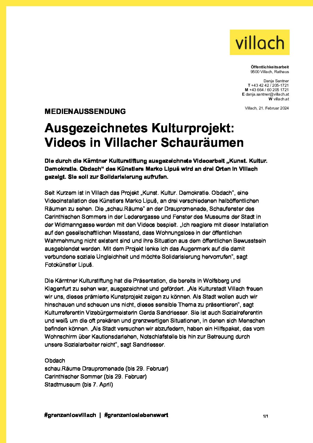 Presseaussendung Stadt Villach: PAObdach_Villach