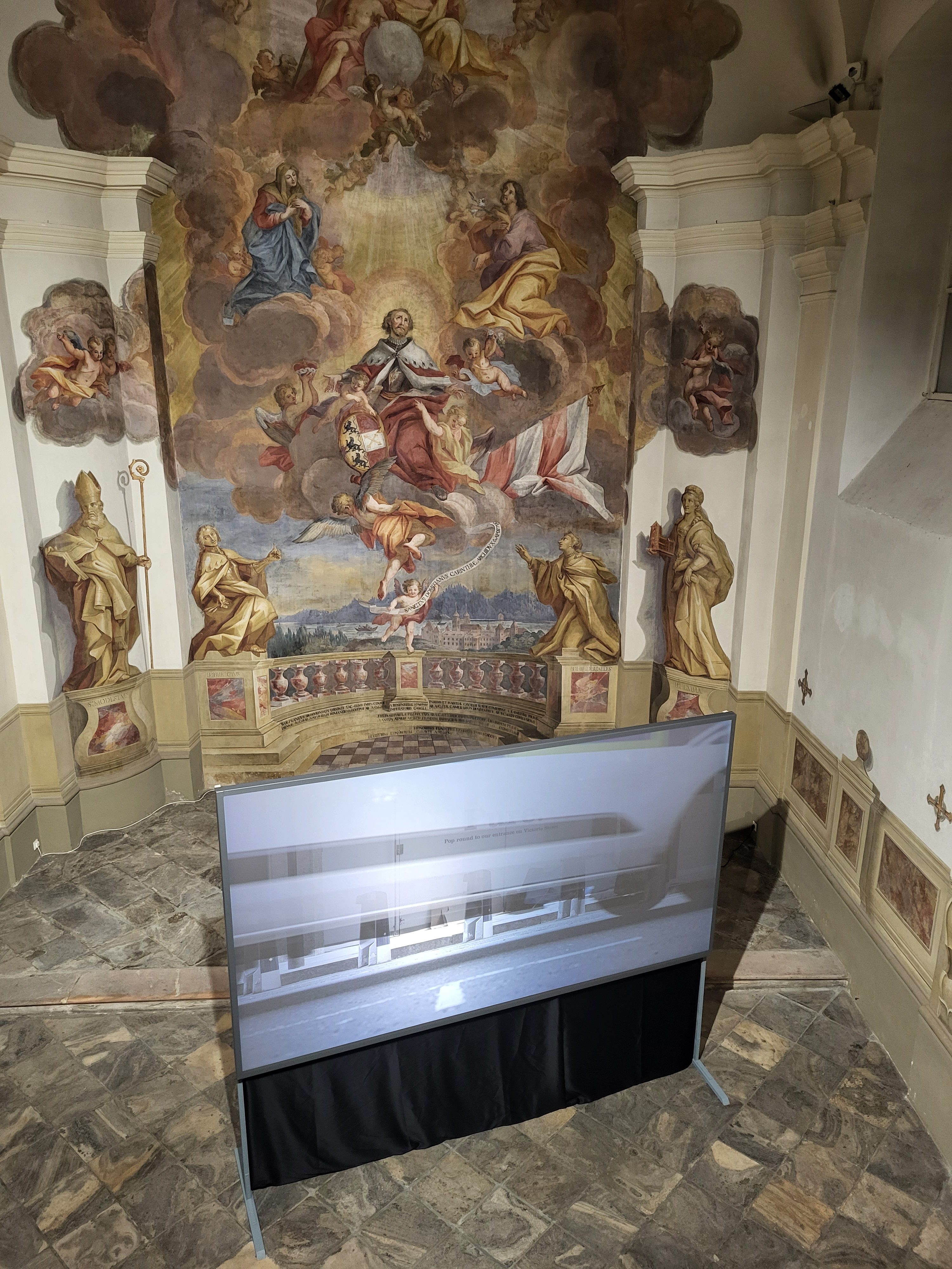 Nach den Präsentationen in der Ruprechtskirche und am Karlsplatz bildet die U-Bahn-Station Volkstheater den Abschluss der Ausstellung der Videoinstallation OBDACH in Wien.
